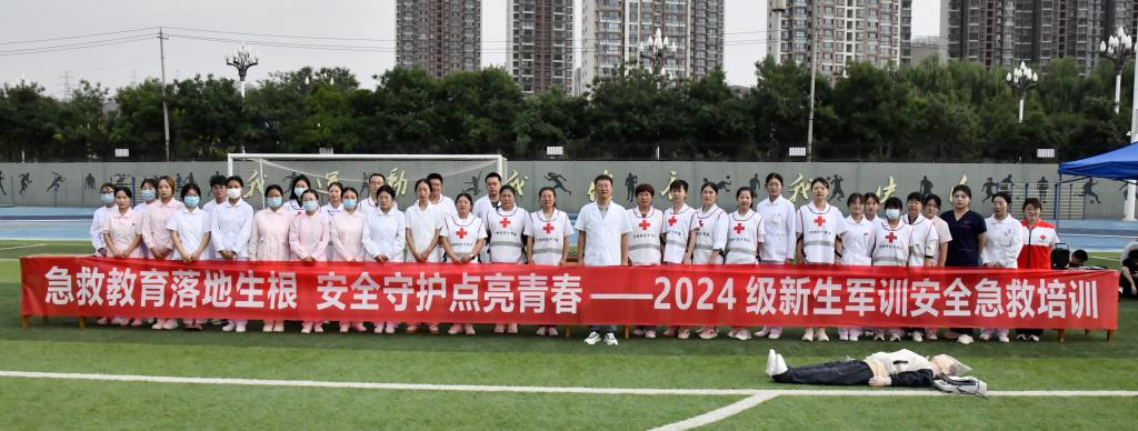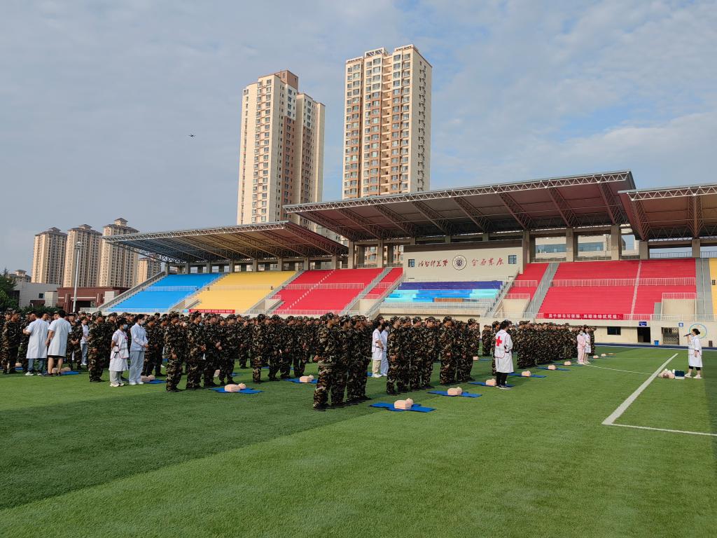 为深入贯彻落实教育部关于全国高校急救教育试点工作的部署要求,扎实推进我校急救教育工作,践行习近平总书记“人民至上、生命至上”理念,学校首次将普及新生安全急救常识,增强新生应对意外伤害的应急救援与自救互救能力,纳入新生军训科目。军训团于9月3日、9月5日在天佑体育场开展了以“急救教育落地生根,安全守护点亮青春”为主题的新生军训安全急救知识培训活动,共培训2024级本科生5672人。