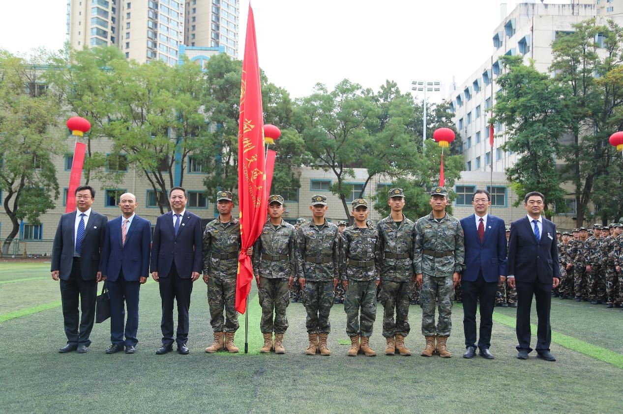 在随后进行的军训开训仪式上,校党委常委、副校长苏程对承训部队教官表示热烈的欢迎和衷心的感谢,对即将开始的军训工作提出了要求和希望。他表示,军训是学生接受国防教育的基本形式,是一堂生动的思想政治课,一场难忘的青春实践课,也是培养德智体美劳全面发展的社会主义建设者和接班人的一项重要措施。希望全体参训学生要提高认识,端正态度,严格训练,确保质量;希望承训教官和学院要严密组织,科学施训。希望同学们一切行动听从教官和带队教师的指挥,以高昂的斗志、饱满的精神投入训练,高质量、安全、顺利地完成这堂内容丰富的思政课、实践课。随后,苏程副校长向承训教官授军训团旗。