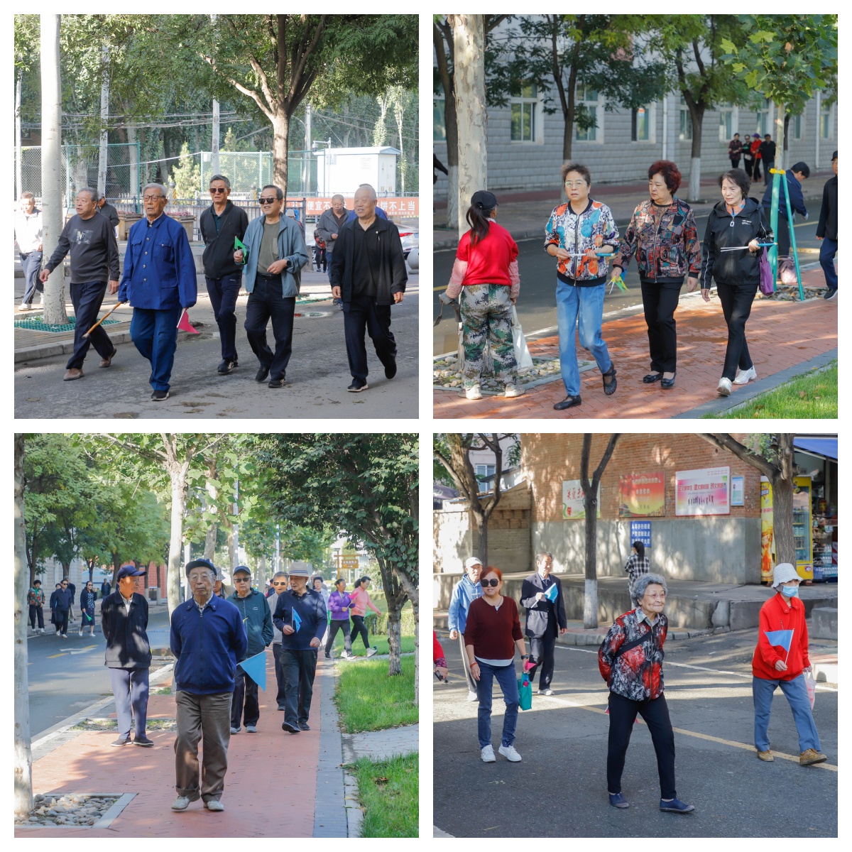 随着离退休教职工服务中心主任岳辉“出发!”一声令下,大家精神抖擞地从离退休办公楼下出发,步行路线依次经过学校家属区、和谐园,到达田家炳教学楼。一路上离退休职工们手挥彩旗、神采奕奕,一边享受秋日暖阳的沐浴,一边与老同事、老朋友有说有笑、其乐融融。