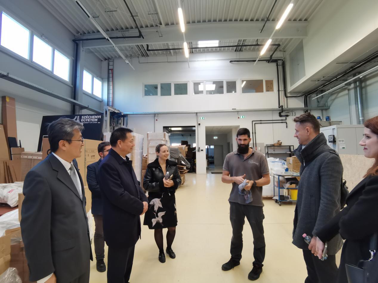 代表团还参观了塞切尼·伊什特万大学校园以及赛车实验室、奥迪发动机实验室、包装实验室(运输安全检测实验室),实地考察了塞切尼·伊什特万大学的校园环境、硬件设施和办学实力,为进一步合作打下了良好的基础。