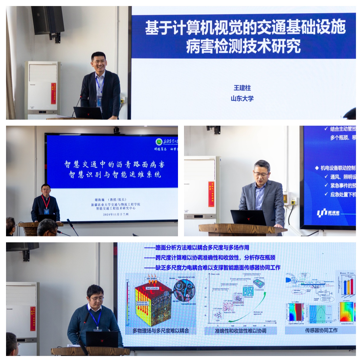 本次研讨会聚焦“交通智能管理与控制、基础设施大数据科学与工程实践、智能运维装备与软件、交通基础设施智能检测”等议题,邀请山东大学齐鲁交通学院党委书记张权主持了智慧交通系列教材发布仪式,同时邀请中国智能交通协会副理事长关积珍、美国内华达大学Xuhao教授、长安大学葛颖恩教授、西南交通大学刘晓波教授、山东大学李利平教授、北京交通大学徐鹏教授、哈尔滨工业大学胡晓伟教授、长沙理工大学龙科军教授、北京工业大学赵晓华教授、中国民航大学王强教授、山东大学吴建清教授等11位专家学者作了大会主旨报告。