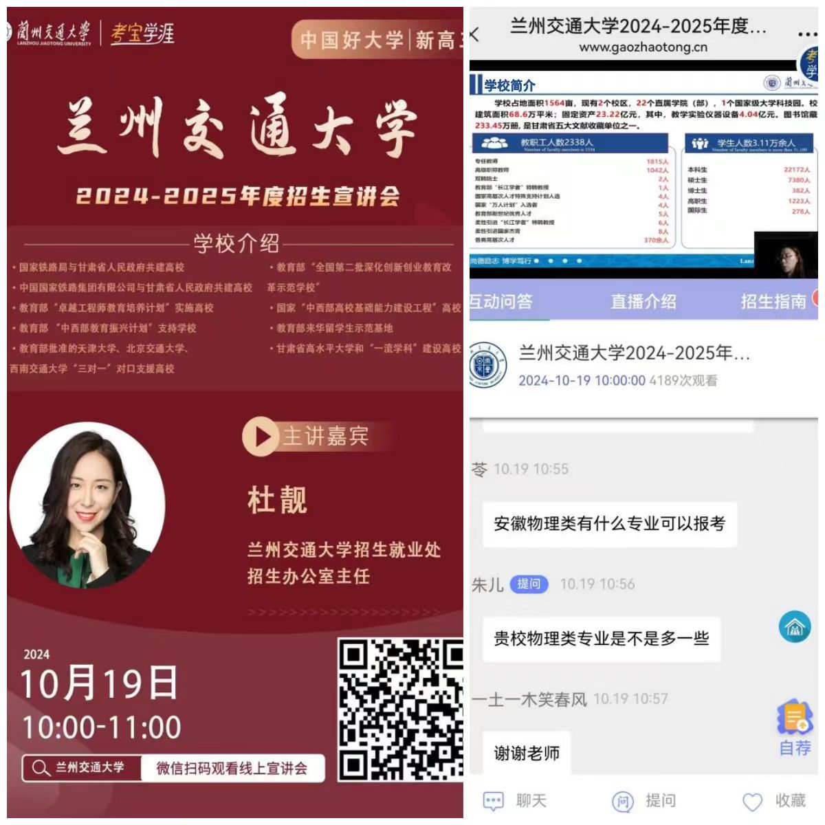 10月19日,我校参与了“新高三——中国好大学”线上招生宣传直播活动,我校专场直播观看人数达4000余人次。