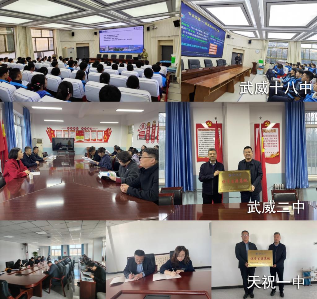 10月31日至11月1日,招生就业处携手新能源与动力工程学院一行5人赴武威市第二中学、武威市第十八中学、天祝县第一中学开展本专科招生宣传工作。在武威市第十八中学,新能源学院老师为新高三学生做了新能源专业前沿知识科普讲座,招生就业处人员介绍了学校整体办学情况,并就2025年甘肃省高考志愿填报等方面做了讲解。在武威二中、天祝一中,招宣组与中学校领导、相关职能部门负责人、高三班主任座谈,对学校进行了全面宣传推介,并就未来高中高校交流互动达成合作意向。