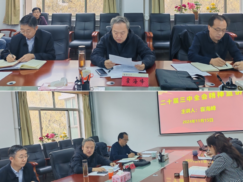 11月15日上午,材料科学与工程学院党委召开党委理论学习中心组集中学习会议,副校长霍海峰到会列席旁听,宣讲二十届三中全会精神,列席学院党委会会议和党政联席会会议,并进行调研指导工作。学院领导班子成员、科级干部、党支部书记及各系负责人和教师代表近20人参加了活动,会议由学院党委书记吴刊选主持。