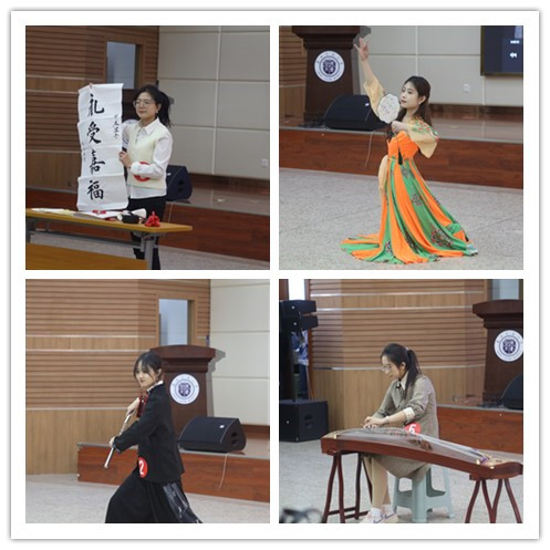 教学技能大赛分为中国选手组和留学生选手组,包括自我介绍齐亮相、教学技能竞赛和中华传统才艺比拼三个环节。比赛过程中,参赛选手们充分代入角色,通过精心设计、借助多元教具将有态度、有情感、重难点突出的教学环节精彩呈现,通过古筝、舞蹈、武术、书法等多种艺术形式展现了自己的独特才华与魅力,体现出过硬的专业技能、深厚的传统文化素养和良好的精神风貌,博得现场评委一致好评。