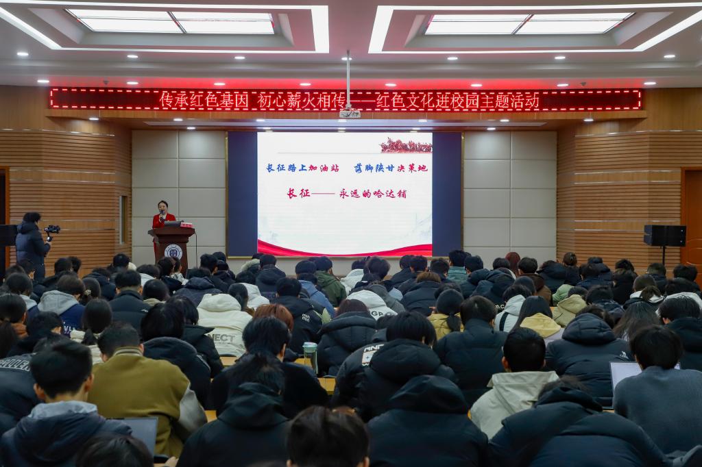 为深入贯彻落实习近平总书记在甘肃考察时的重要讲话精神和关于学校思政课建设的重要指示精神,充分发挥红色资源育人功能,传承红色基因,12月12日下午,哈达铺红军长征纪念馆走进我校,开展“传承红色基因 初心薪火相传——红色文化进校园”主题活动,为我校师生上了一堂特别的红色文化“大思政课”。活动由党委宣传部负责人主持,360余名学生参加活动。