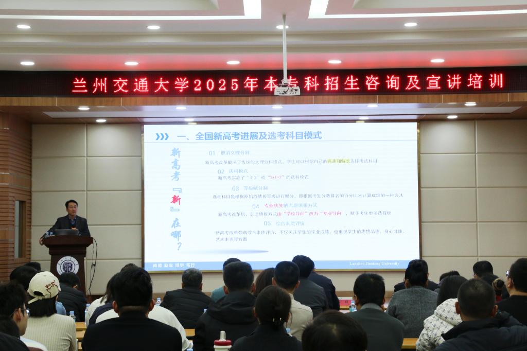 招就处相关负责人介绍了全国新高考进展及选考科目模式,详细解读了甘肃省新高考改革政策及志愿填报规则,对我校2024年招生录取政策进行解读说明。