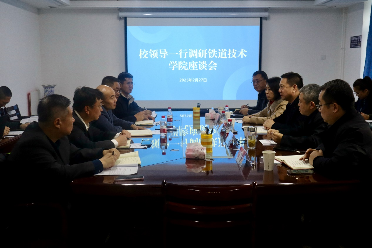 2月27日下午,学校党委常委、副校长朱廷珺、张弢带队深入铁道技术学院调研指导新学期各项工作,并座谈交流。