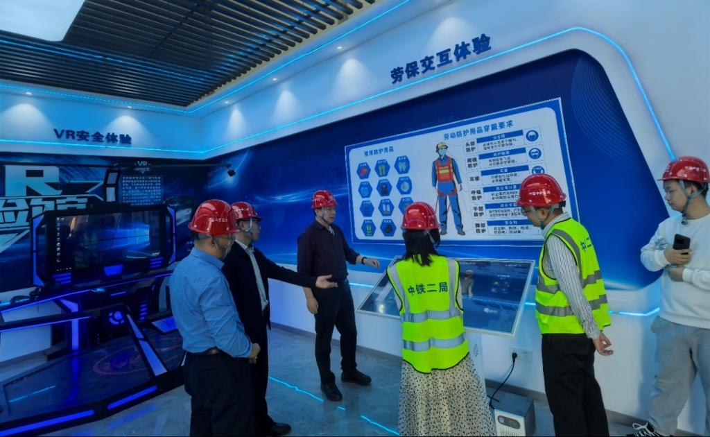 在“成德地铁”工地现场,朱廷珺专注听取项目部经理的详细介绍,仔细询问项目工期、施工进度以及施工过程中遇到的技术难题。随后,他走进项目部的VR馆,饶有兴致地体验了3D消防、综合用电、劳保交互等虚拟现实技术。