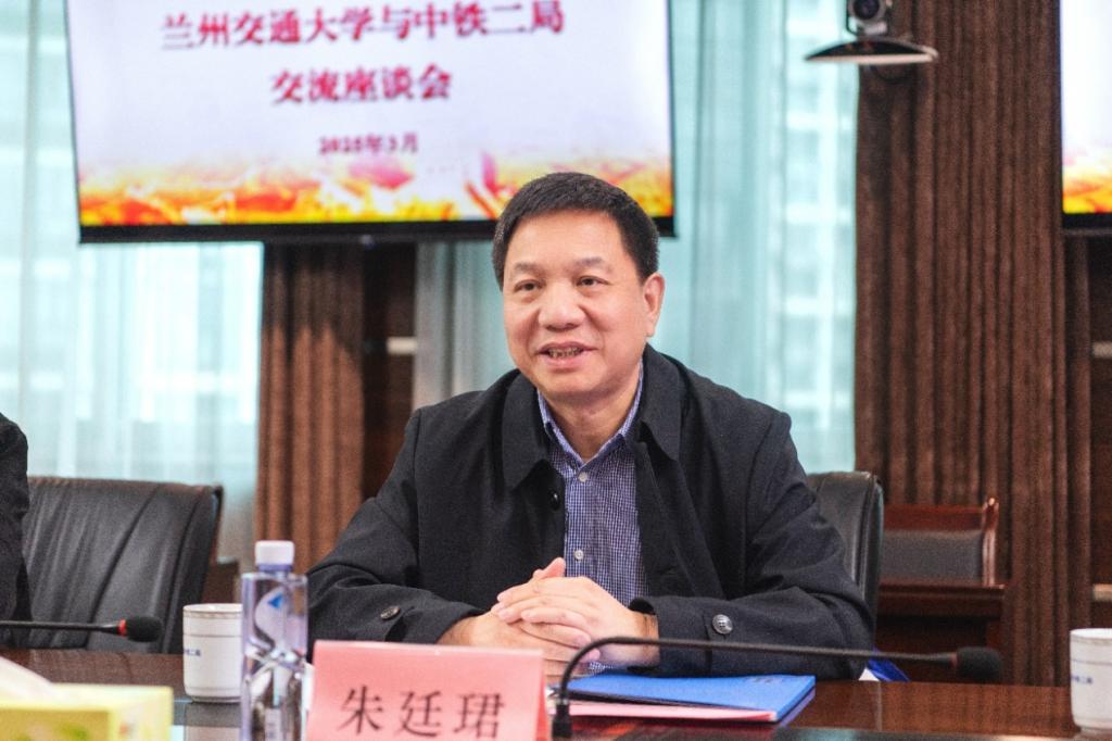 座谈会上,朱廷珺介绍了学校近年来发展概况,对中铁二局长期以来对学校事业发展的关心与支持表达诚挚谢意。他指出,兰州交通大学作为一所行业特色鲜明的高校,扎根甘肃,积极服务地方,持续强化轨道交通办学特色。在推进高水平大学建设进程中,学校培养了大批高素质人才,实现了高质量内涵式发展,为地方经济社会发展和全国轨道交通事业贡献了重要力量。当下,从国家战略、区域战略,到轨道交通行业发展和高等教育改革,诸多层面都为学校发展带来了宝贵的政策机遇,学校在服务轨道交通行业方面前景广阔。学校将紧扣第十二次党代会提出的力争一个“新突破”、实现 “五个新提升”、建成 “两个新高地” 的建设目标,致力于打造一所区域优势突出、行业特色鲜明的高水平大学。他希望与中铁二局依托双方资源优势,在产学研融合、人才培养模式优化、促进学生就业等领域深化对接、务实合作。