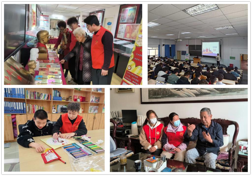活动月内容包括“雷锋精神”主题团日、专项志愿服务、“志愿赋能”志愿服务公开课三大板块,其中专项志愿服务涵盖了“爱心甘肃”志愿服务活动、“生态环保”志愿服务活动、“金晖行动”志愿服务活动、“防灾减灾”志愿服务活动、“青春社区”志愿服务活动等五项特色志愿服务活动。我校志愿者参与了全部板块的志愿服务,通过观看雷锋系列影片活动,举行“雷锋精神”宣讲会,了解雷锋英雄事迹,分享对新时代雷锋精神的理解感悟;通过组建青年关爱志愿服务队,走进敬老院、儿童福利院,用暖心的关爱践行了雷锋精神,让“一老一小”感受到社会的温暖;通过参与保护母亲河、植树节、世界水日等环保活动,共同为营造文明优美的生态环境贡献力量;通过走访看望退役军人,聆听他们讲述军旅生涯中的感人故事和退役后服务社会的点滴奉献,鼓励广大青年践行雷锋精神,积极参与中国式现代化建设,为社会贡献青春力量;通过参观地震博物馆,学习地震预防知识,积极宣传防灾减灾知识,让更多的人了解自然灾害的危害,掌握应对灾害的方法和技能;通过走进社区,帮助社区居民解决生活困难,协助社区工作人员强化基层治理,传承雷锋精神;通过组织学习《青年志愿服务的新机遇——新时代志愿服务体系建设》《AI 应用赋能志愿服务工作项目实战指南》等公开课程,清晰认识志愿服务的宏观环境和发展方向,增强了参与志愿服务的使命感和荣誉感。