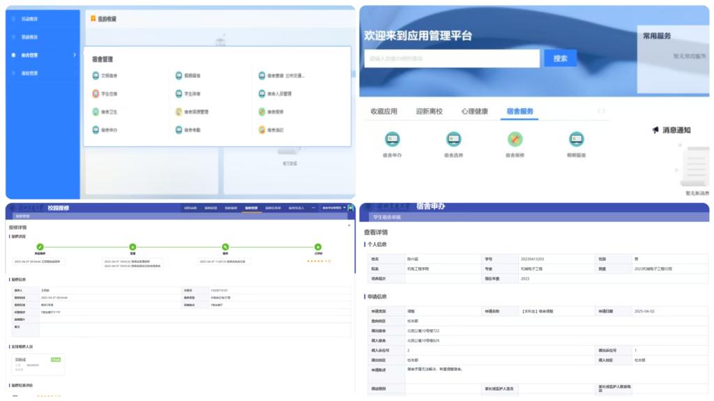公寓中心以信息化建设为突破口,全面重构服务流程。2024年起实现本、硕、博学生住、调、退宿业务全流程线上办理,业务办理时效缩短60%以上。“今日校园”APP新增“宿舍报修”模块,2024年完成维修工单4800余项,平均响应时间压缩至2小时。针对问卷反映的调宿诉求,推出线上房源匹配系统,调配效率提升40%。2023年暑期开始,实现假期留宿线上申请,服务学生3200人次。线上业务办理率从45%提升至92%,紧急事件响应时间缩短70%。