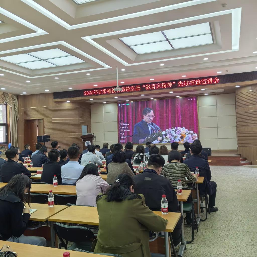 下午,甘肃省教育系统弘扬“教育家精神”先进事迹宣讲活动在兰州大学举行。我校副校长霍海峰,党委教师工作部(人事处)、教师发展中心主要负责人出席活动。本次活动采取“线上+线下”相结合的形式,我校在第二教学楼报告厅设立分会场,校属各职能部门、教学科研单位负责人及各学院(部)教师代表共计150余人集中聆听宣讲报告。