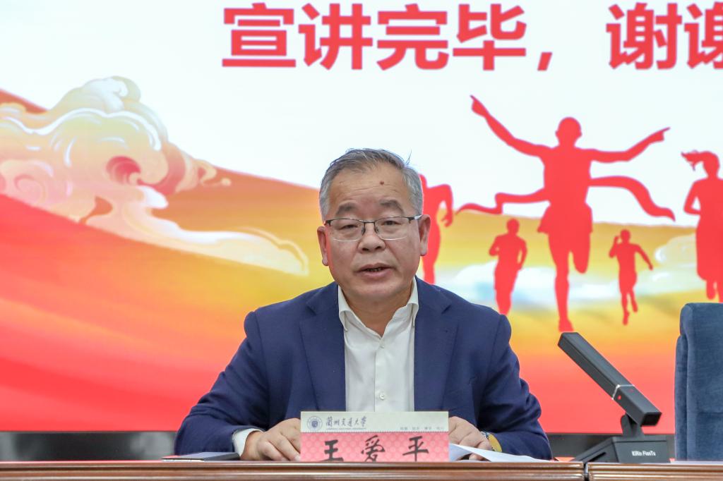 王爱平指出,学校要坚持以习近平新时代中国特色社会主义思想为指导,把学习贯彻全国两会精神与学习贯彻习近平总书记关于教育的重要论述、习近平总书记视察甘肃重要讲话重要指示精神结合起来,全面推动全国两会精神入脑入心入行,落实到学校各项工作中去。要坚持教育、科技、人才一体化推进,全面落实立德树人根本任务,全面贯彻落实教育强国建设三年行动计划,聚焦学校优势突破方向,持续提升学校办学水平。
