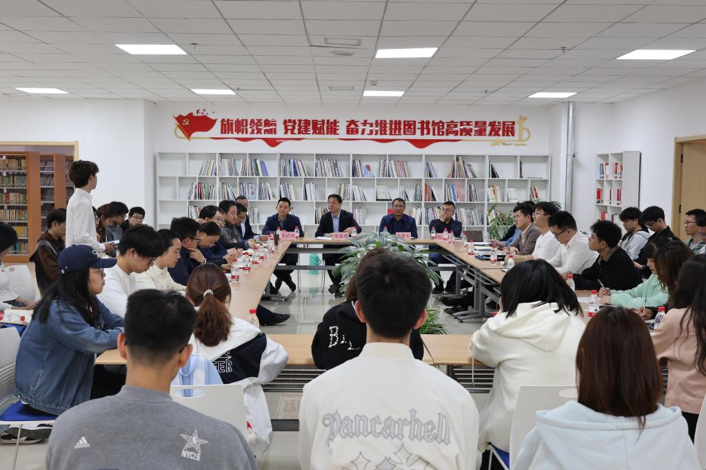 座谈会前,朱廷珺一行还深入图书馆八楼书库调研馆藏图书流通情况,并在阅览区与现场学生亲切交谈,了解大学生读书学习情况,征询对图书馆智慧化建设和服务方面的意见建议。