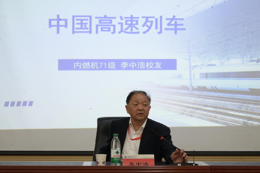 五十载岁月如歌,半世纪情牵母校。在机71、72级校友毕业五十周年重返校园之际,5月8日下午,机电工程学院在笃行楼中翼报告厅举办学术报告会,有幸邀请到了中国轨道交通协会技术装备专业委员会副主任、内燃机车71级校友李中浩老师为学院师生作题为《中国高速列车》的学术报告。学院相关负责人,内燃机车71、72级任课教师叶秀珊老师和部分校友、青年教师代表和研究生、本科生代表共300余人参加此次会议。会议由学院党委负责人主持。