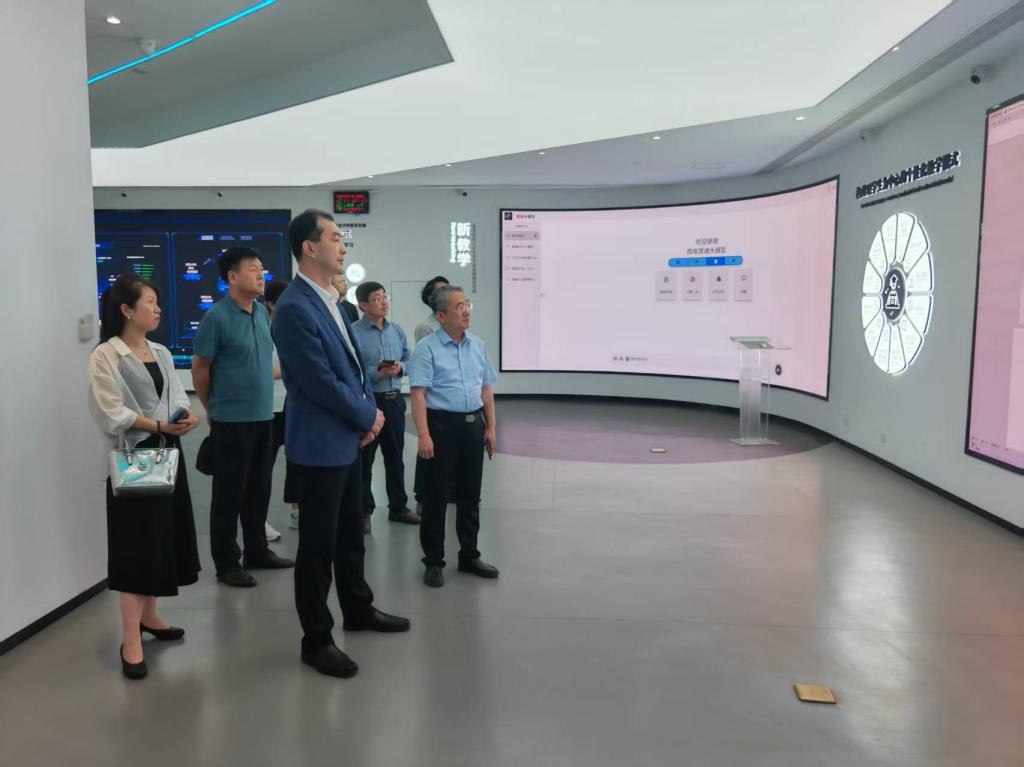 在西安电子科技大学AI+教育中心,苏涛介绍了西安电子科技大学“5G+智慧教育”典型应用场景和案例。西安电子科技大学利用5G纵横贯通、万物互联的特性,系统推进5G+互动教学、综合评价、智慧校园建设,凝练新环境、新教学、新评价、新资源、新培训、新治理的“六新”教育理念,形成了5G与智能教育融合应用的“西电方案”。通过“西电方案”,学校实现了由经验驱动向数据感知驱动管理模式变革,用数据说话,用数据决策,精准聚焦、稳步推进人才培养和教育教学工作质量。