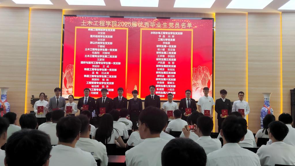 大会宣读了《土木工程学院关于表彰奖励2025届优秀毕业生党员的决定》。与会领导为获奖学生颁发了荣誉证书。