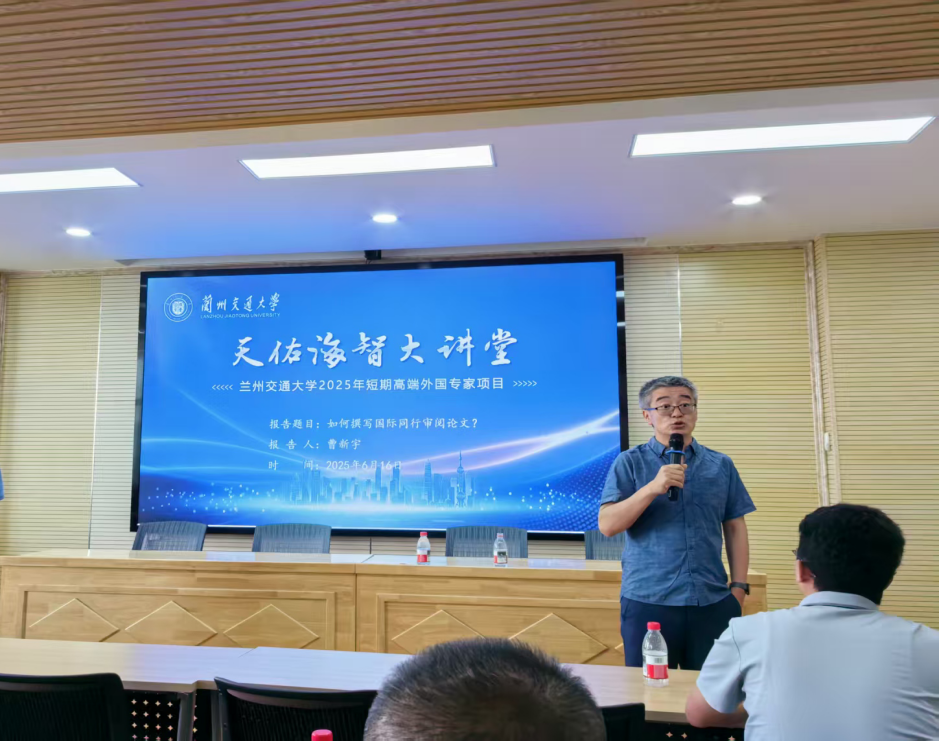 6月16日下午,依托学校2025年短期高端外国专家项目,应“海智计划”兰州交通大学站、交通运输学院联合邀请,明尼苏达大学公共事务学院教授、长安大学访问教授曹新宇在交通运输学院806学术报告厅,为交通运输学院师生作了题为《如何撰写国际同行审阅论文》的学术报告。