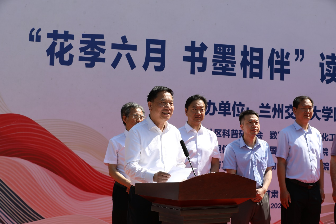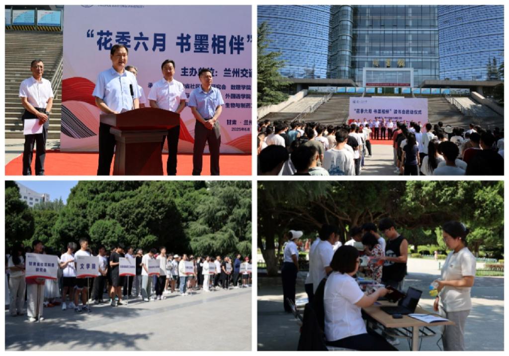 6月21日,学校2025年“花季六月 书墨相伴”读书会启动仪式在图书馆前广场举行。党委常委、副校长朱廷珺出席仪式并宣布活动开幕。启动仪式由图书馆负责人主持,甘肃省社区科普研究会及相关单位负责人及师生代表300余人参加活动。