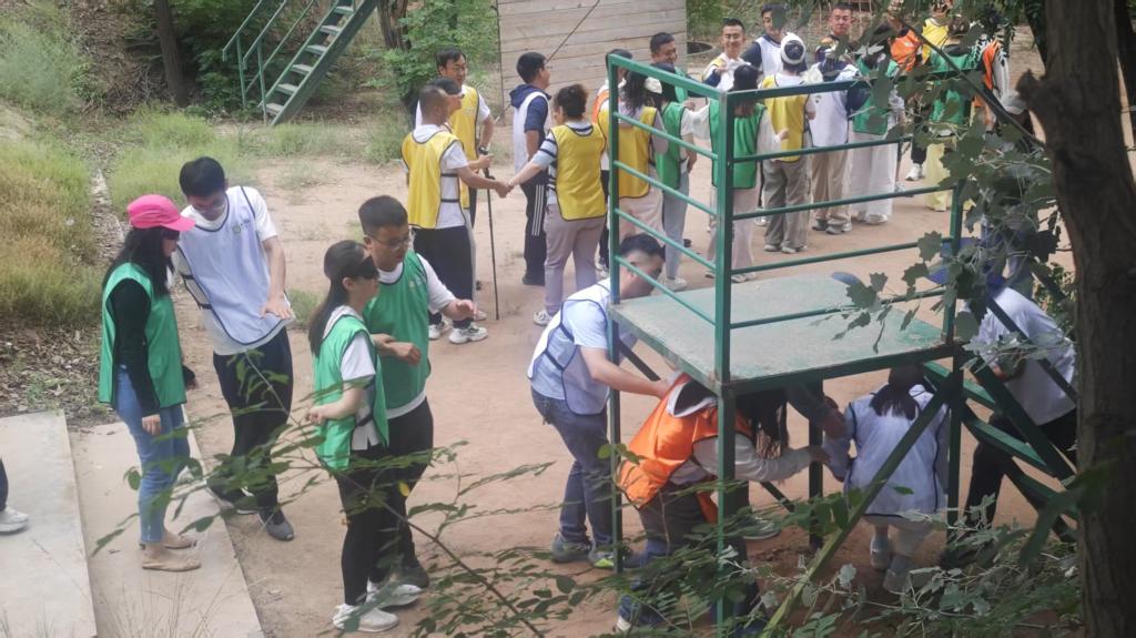 “信任躺”环节是对团队协作、信任与默契的考验。队员们克服心理障碍,勇敢向后倒去,由队友稳稳接住。一位参与活动的青年教师感慨:“倒下那一刻才真正体会到信任的力量,感谢队友的可靠!”随后的“群龙取水”挑战中,取水的老师在全队的通力协作下完成任务,展现了团队协作与沟通的重要性。
