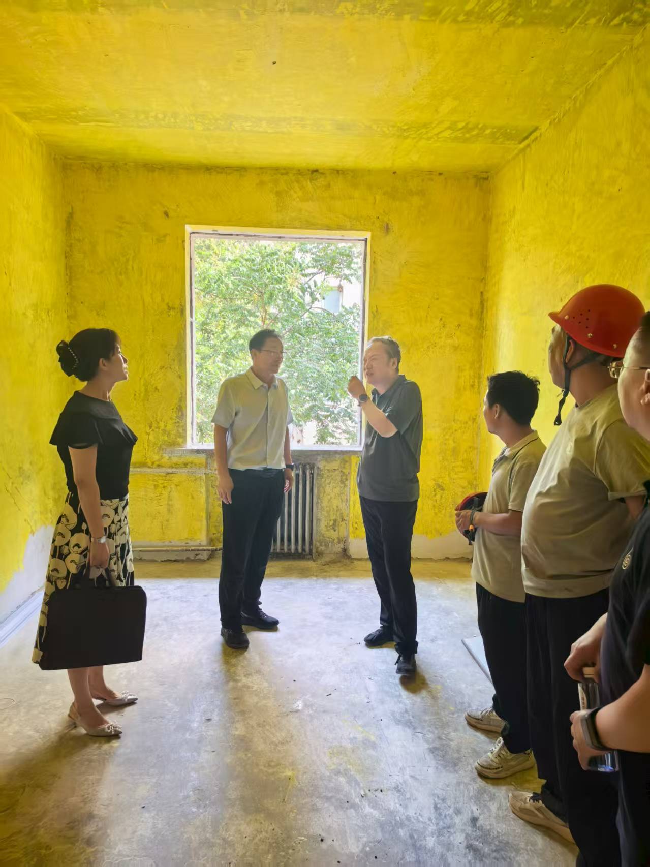 校领导一行先后前往北苑公寓1号楼、附属小学、青年教师公寓等维修改造项目施工现场,认真听取相关负责人关于工程规划、施工进度、质量管控及安全保障措施的汇报,详细询问施工难点、材料供应及人员调配等情况,并就现场发现的问题与施工方进行即时沟通。