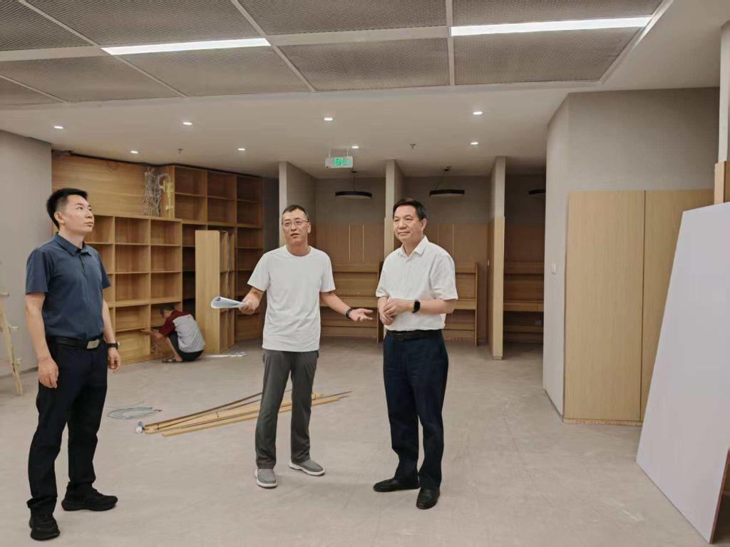 8月1日,党委常委、副校长朱廷珺现场视察图书馆(天佑美术馆)改造提升项目(一期)工程收尾工作。党委(校长)办公室、图书馆相关负责人陪同视察。