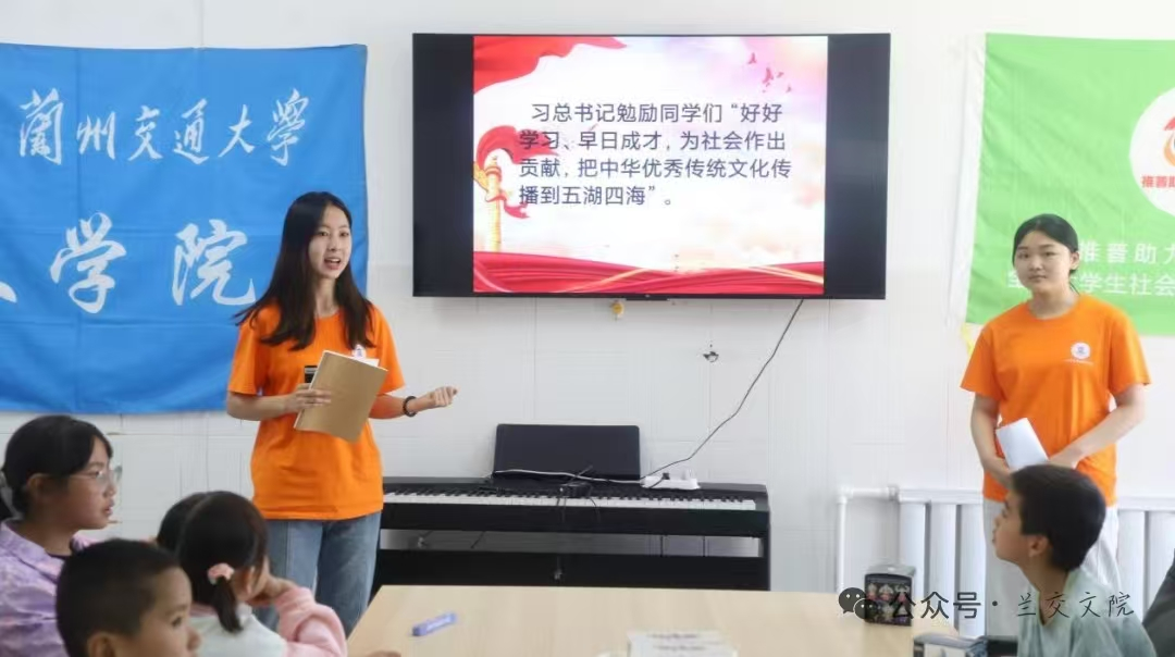 以纪念中国人民抗日战争暨世界反法西斯战争胜利80周年为契机,机电工程学院寻找“最美陇原笑脸”暑期社会实践团走访会宁红军会师旧址、南梁革命纪念馆等地,通过党史宣讲、红色研学等形式弘扬革命精神。艺术设计学院“镜承文脉,临夏传薪”暑期三下乡实践团在临夏开展非遗文化探索活动,同步宣扬泥塑、砖雕等非遗文化,传承非遗精髓,在实践中深化对文化保护的认知。文学院“同言语 共复兴”暑期社会实践团计划深入红沟寺村农户,通过细致的入户调研精准描绘村民语言能力图谱,切实助力当地国家通用语言文字普及工作。老师,‘民族团结’这四个字,怎么读才标准呀?”“‘民’是前鼻音,‘族’是平舌音。同学们,来跟着我一起读。”在甘肃省临夏回族自治州东乡族自治县锁南镇城南社区服务中心,一堂由大学生带来的生动语言课,让孩子们欢乐加倍,也吸引不少居民驻足聆听。这是兰州交通大学“青春石榴红”乡村推普实践团与该校马克思主义学院“华夏同根”铸牢中华民族共同体意识教育调查实践团,融合开展“推广普通话,共筑团结情”暑期社会实践活动的一幕。