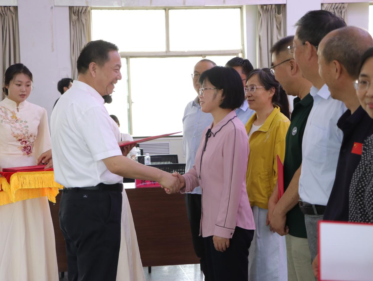 校党委常委、副校长朱廷珺为光荣从教三十年教师代表颁发了荣誉证书,证书承载着对老师们教育生涯的肯定,更凝聚着对他们为学科发展、人才培养所做贡献的崇高敬意。学生代表为从教三十年的教师献上鲜花。