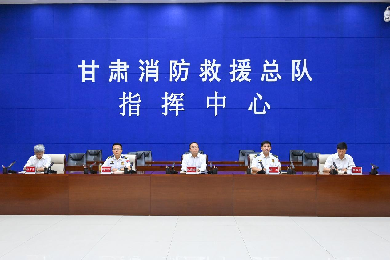 在总队长陆军、政委周海滨等领导的陪同下,陈喜春一行观摩了消防救援车辆和装备器材,参观了“橙耀陇原”消防工作成果展,考察了全媒体中心和重大灾害场景数据融合智慧平台。
