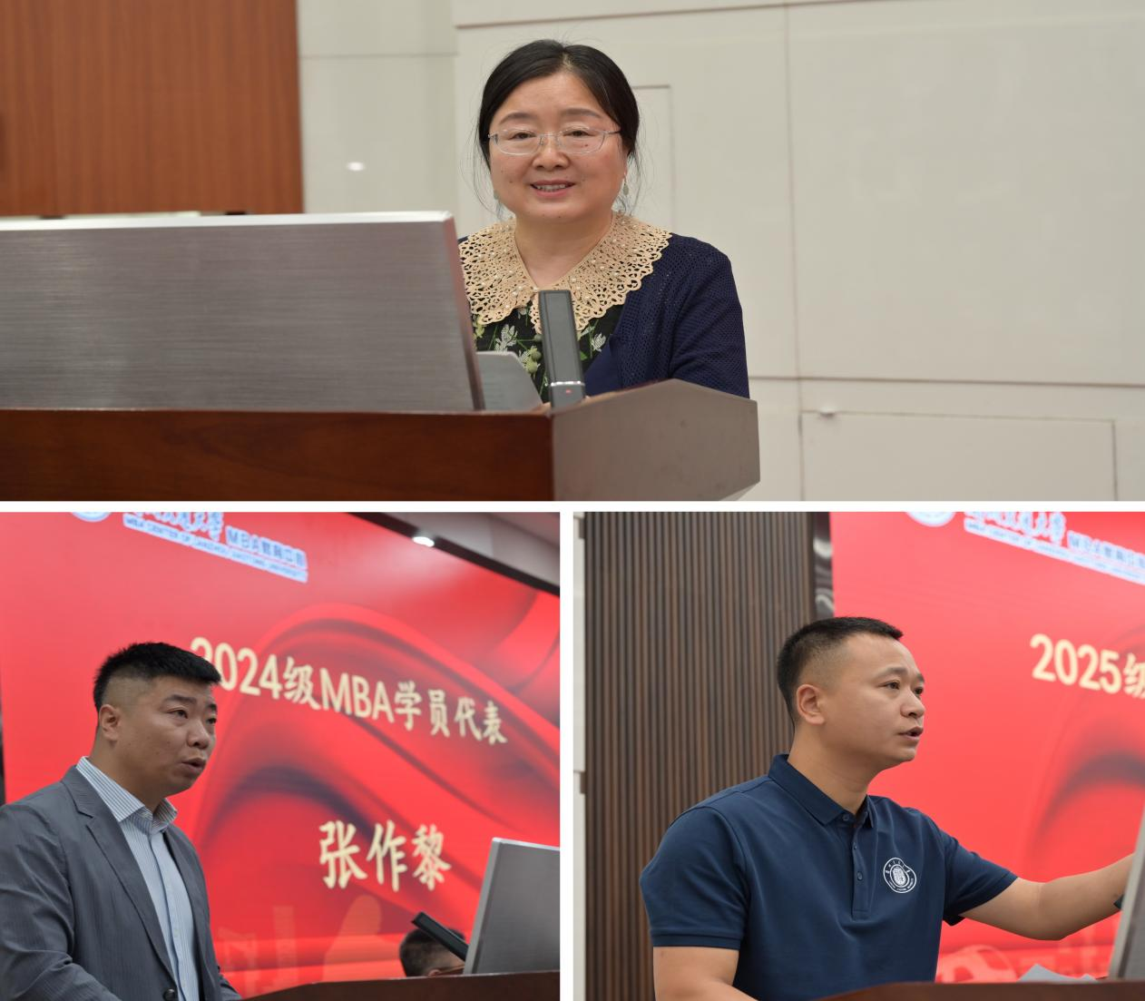 MBA教师代表王文利教授在发言中用充满哲思与温度的致辞,为新生揭示了MBA学习的底层逻辑,表达了对来自一线、富有实践经验的学员的欢迎。2024级学员、MBA联合会主席张作黎代表在校生欢迎新同学,希望大家珍惜时光,勤奋学习,不断提升管理专业素养和综合能力。2025级学员代表王超感谢学校提供开放、包容的学习交流创新平台,同时表示将会通过努力学习为所在企业乃至行业贡献自己的智慧和力量。