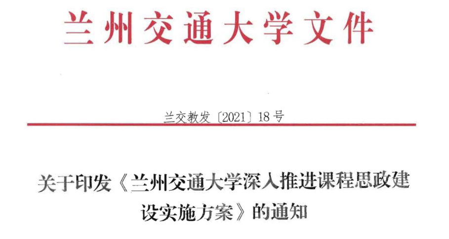 全面推进高校课程思政建设是落实立德树人根本任务的战略举措,是推动“大思政课”建设的重要内容,是构建“三全育人”格局的主要环节,是全面提高人才培养质量的主要任务。为全面贯彻落实习近平总书记关于教育的重要论述和全国教育大会精神,贯彻落实中共中央办公厅、国务院办公厅《关于深化新时代学校思想政治理论课改革创新的若干意见》,把思想政治工作贯穿教育教学全过程,充分发挥每门课程的育人作用,切实提高课程育人实效,全面提升人才培养质量,根据教育部《高等学校课程思政建设指导纲要》相关要求,兰州交通大学建立健全课程思政建设工作机制,全面推进课程思政建设。