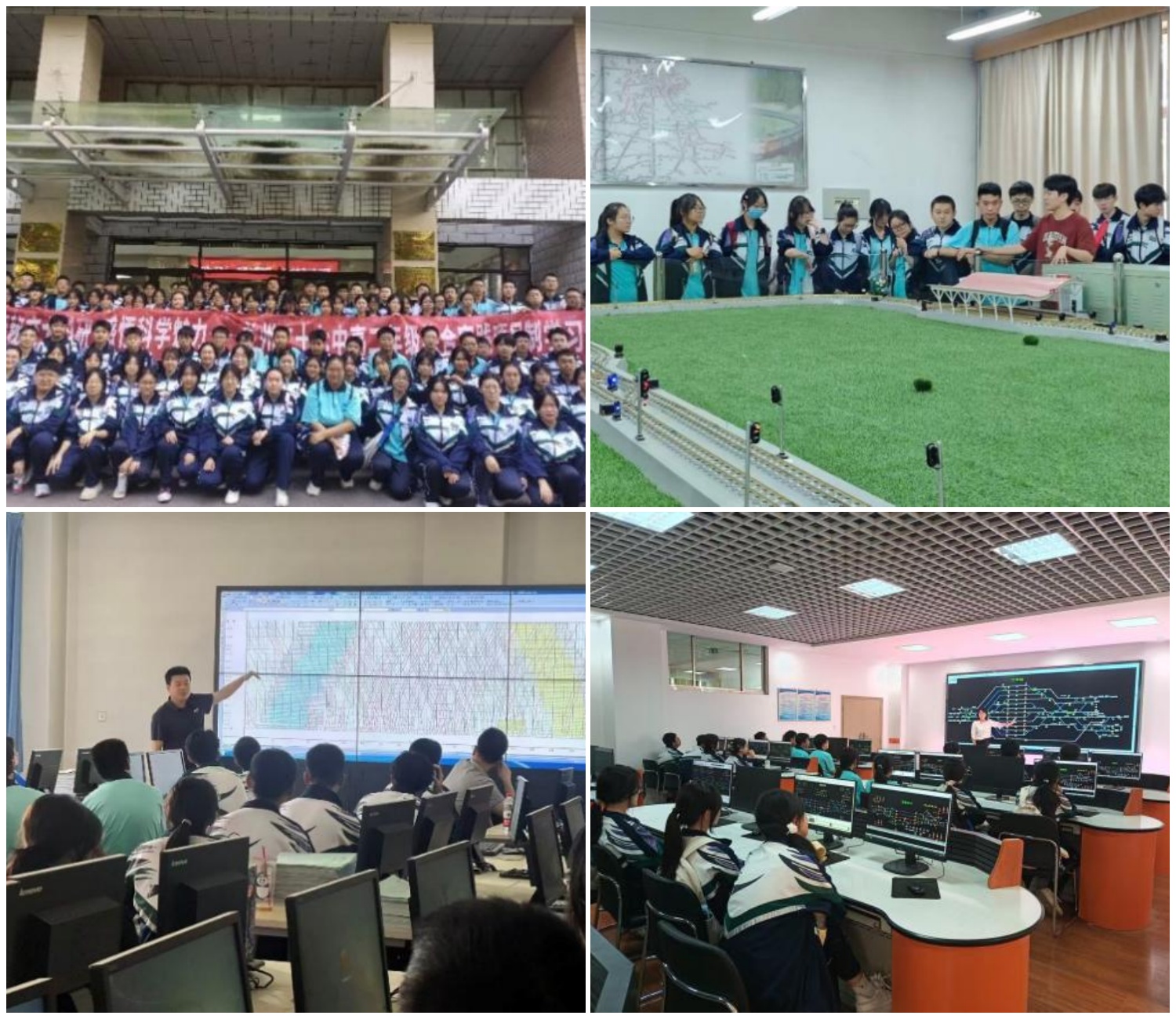 师生们首先来到以交通运输学院轨道交通综合实验室为依托的铁路运输科技馆,依次探访轨道交通接发列车作业模拟、轨道交通列车运行与控制、轨道交通运营管理与决策支持三个实验室。科普活动通过“理论 + 实操”的方式,让复杂的铁路科技变得可感可及。师生们在接发列车作业模拟实验室,沉浸式体验列车到站的接发作业流程,在亲手操作中领悟安全准则;在轨道交通列车运行与控制实验室触摸“铁路智慧大脑”,看信号、联锁闭塞系统如何精准控制列车运行;在运营管理与决策支持实验室,聚焦屏幕上的列车运行图,听讲解员解析其如何依据客流、线路等因素科学规划发车计划,成为运营效率的“隐形指挥家”。