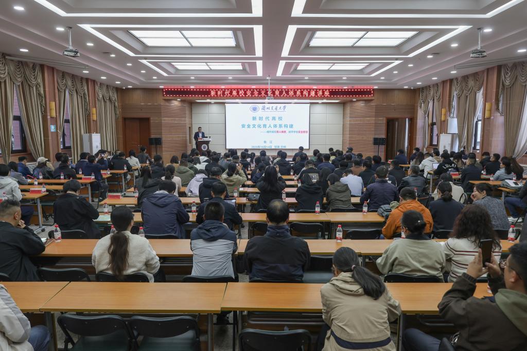 讲座结束后,党委学生工作部相关负责人作总结发言。他指出,包江老师的报告内容丰富、逻辑清晰、案例鲜活,为我校深入推进安全文化育人工作提供了重要的理论指导与实践参考。他强调,安全教育是维护大学生安全的基础教育,对保障学校安全稳定和人才培养具有根本性作用。他要求全体参会人员会后认真领会讲座精神,结合学院(部)工作实际,将安全育人要求落到实处:一要深入贯彻落实总体国家安全观,强化安全文化意识,扎实做好日常学生安全教育;二要切实履行驻校值班、重点学生关注等安全稳定工作职责,充分发挥“防范、化解、疏导”作用;三要持续提升自身安全管理工作能力,共同推动我校安全文化育人体系建设迈向新高度。