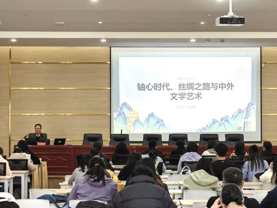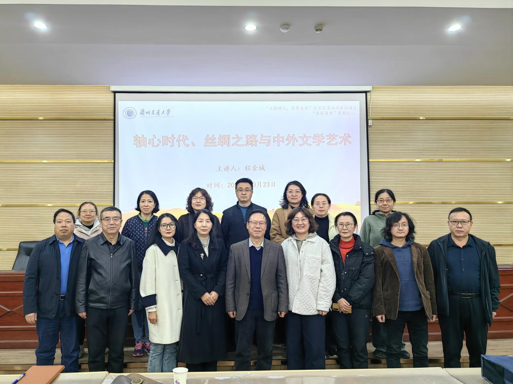 10月23日,兰州大学文学院原院长、博士生导师程金城教授应邀为我校文学院师生作了题为“轴心时代、丝绸之路与中外文学艺术”的讲座。讲座由学院负责人主持,学院师生近200人现场聆听。