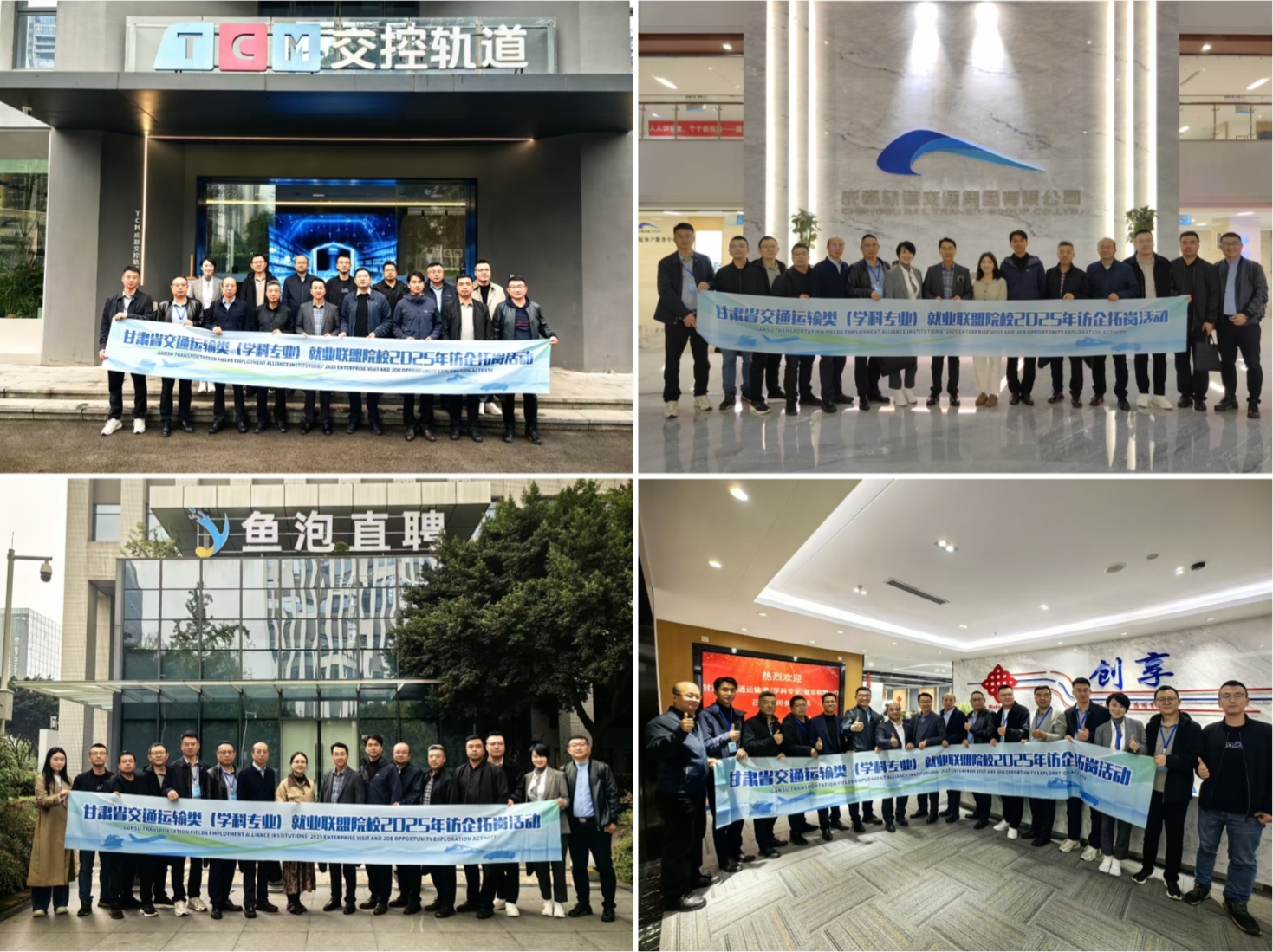 为落实党中央、国务院关于高校毕业生就业工作的决策部署,提升甘肃省高校交通运输类学科专业建设水平,深化校企协同育人,10月27至31日,由兰州交通大学牵头的甘肃省交通运输类(学科专业)联盟院校赴成都、重庆开展“访企拓岗”促就业专项行动。联盟以兰州交通大学、兰州博文科技学院、甘肃交通职业技术学院为主体,先后走进四川省创享人力资源管理有限公司、成都鱼泡科技有限公司、成都轨道产业投资集团有限公司、成都交控科技有限公司、赛力斯汽车(湖北)有限公司重庆分公司、中建桥梁有限公司等6家企业,并拜访重庆市江津区科学技术局、重庆交通大学山区桥梁及隧道国家重点实验室,围绕岗位拓展、科研协同、人才共育达成一系列合作意向,现场推介2026届毕业生,为毕业生搭建从校园到职场的“直通车”,持续挖掘优质岗位资源,助力毕业生高质量充分就业。