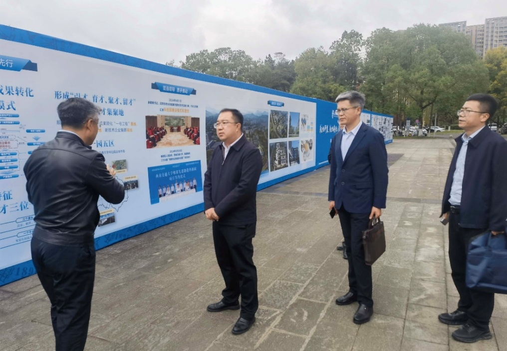 在西南交通大学,调研组参观了“就地研发、就地转化、就地产业化”成果展,详细了解了学校在交通运输、轨道交通等优势学科领域,如何通过科技园带动产业集聚,以及在推动技术创新、培育战略性新兴产业方面的特色做法。