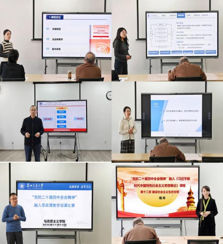 参赛教师围绕“习近平新时代中国特色社会主义思想概论”“马克思主义基本原理”“思想道德与法治”“中华民族共同体概论”等核心课程,精心设计说课内容,不仅深入解读党的二十届四中全会精神的丰富内涵与核心要义,更着力探索如何结合当代大学生的思想实际和专业特点,将全会提出的新思想、新论断、新部署巧妙无缝地融入教学环节与知识体系之中,力求使理论阐述既有深度又能引发学生共鸣。