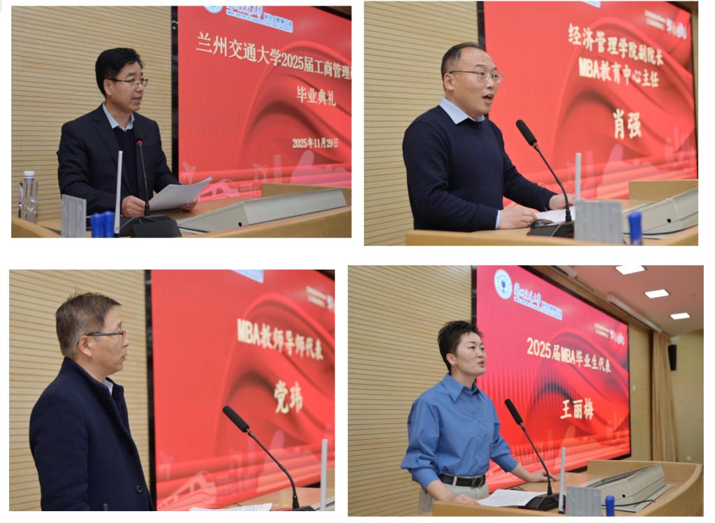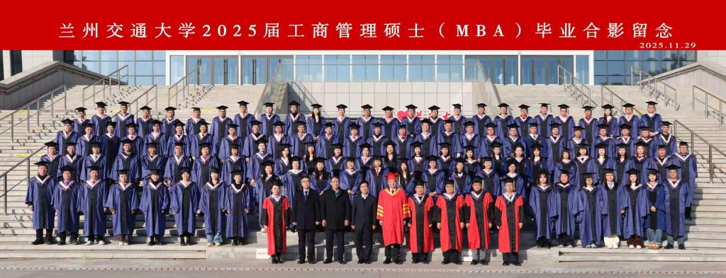 11月29日下午,兰州交通大学2025届工商管理硕士(MBA)毕业典礼在MBA教育中心举行。校党委常委、副校长朱廷珺出席典礼。学校研究生院与经济管理学院负责同志,MBA教师代表及2025届106名MBA毕业学员参加了典礼。典礼由经济管理学院相关负责人主持。
