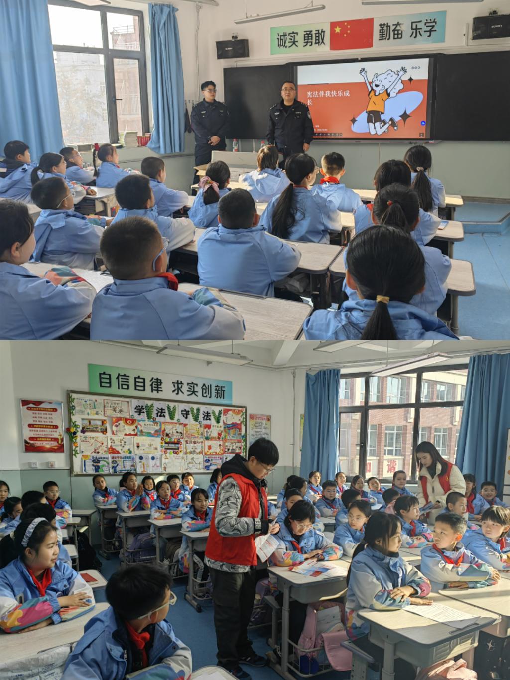 家校社协同发力,法治育人全覆盖:附属小学积极构建“家校社协同育人”机制,将法治副校长进校园作为重要抓手,联动家庭、社区形成法治教育合力。在“12·4”国家宪法日当天,我校法治副校长——安宁西路派出所刘军警官为同学们带来了一场主题为“尊崇宪法·伴我成长”的宪法知识专题讲座。讲座中,法治副校长结合真实案例,用通俗易懂的语言,生动形象地讲解了宪法与我们日常生活的关系,以及作为小学生应如何遵守宪法和法律。讲座内容丰富,互动性强,极大地激发了同学们学习宪法的热情,深化了他们对宪法的理解和认识。讲座结束后,社区工作人员将普法宣传册发放给同学们,学校积极鼓励家长与孩子共同学习法治知识手册,营造“家校共育、法治同行”的良好氛围。