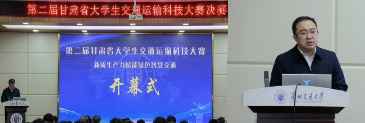 大会开幕式由兰州交通大学交通运输学院负责人主持。开幕式上,兰州交通大学副校长陈喜春代表学校致辞。他指出,甘肃位于“一带一路”重要节点,是西北地区交通枢纽,当前智能交通、智慧物流、新能源交通装备等新技术体系正加速重塑行业格局。在此背景下举办交通运输科技大赛,对于推进高校教学改革、强化科技创新能力和培养高水平应用型人才具有重要意义。他希望参赛学生以赛事为平台提升创新意识与工程实践能力,主动将个人发展融入交通强国建设之中。