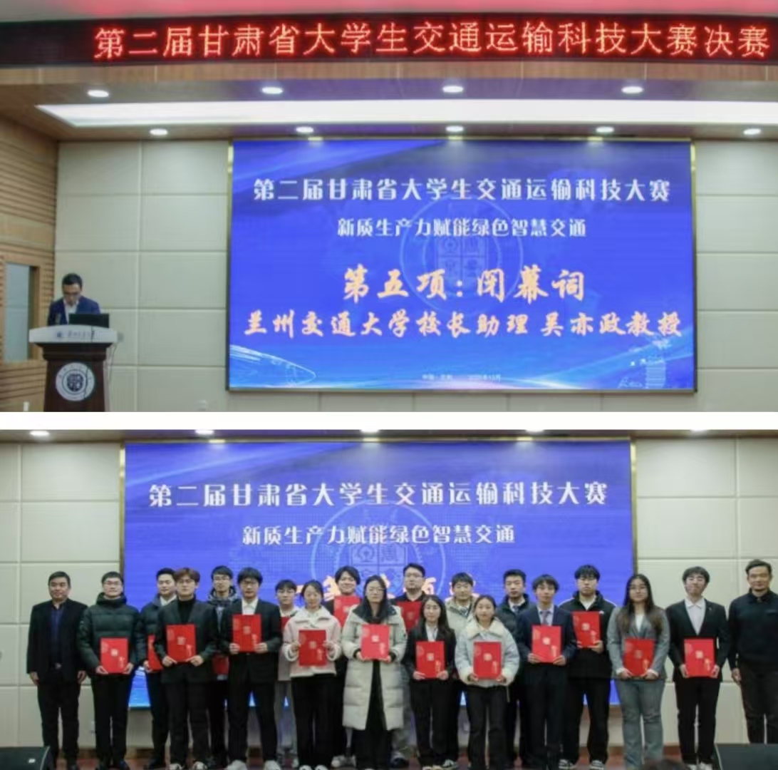 在大赛闭幕式上,兰州交通大学校长助理吴亦政对本届比赛进行了总结。他指出,交通运输科技大赛既是全省交通类专业教育成果的一次集中检阅,也是高校青年创新人才成长与交流的重要平台。本届参赛团队在智慧交通、智能运维、绿色物流等方向展现出良好的技术基础与工程实践能力,充分体现了新时代大学生勇于探索、敢于创新的精神风貌。