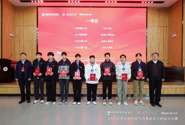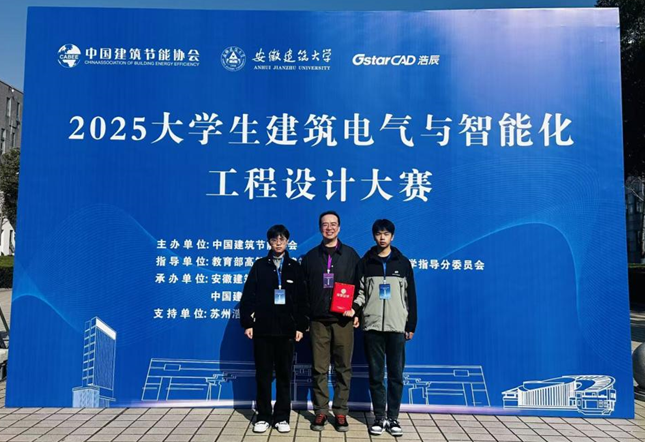 同期,在安徽合肥举办的“2025年全国大学生建筑电气与智能化工程设计大赛”中,我校代表队凭借出色的专业设计与创新实践能力,荣获全国一等奖,并获邀作大会经验分享。此项赛事由教育部建筑电气与智能化专业教指委指导,行业学会主办,充分彰显了我校在“新能源+智慧建筑”跨学科教学改革方面的实力与影响力。