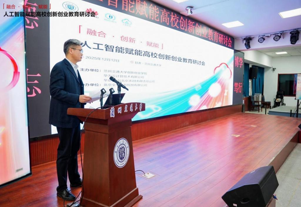 为紧抓人工智能技术发展契机,探索创新创业教育数字化转型新路径,12 月 12 日,“人工智能赋能高校创新创业教育研讨会”在我校举办。本次研讨会由创新创业学院联合华为云计算技术有限公司、华宸智域(北京)科技有限责任公司共同发起,来自甘肃省各高校的创新创业教育负责人、学科竞赛相关负责人齐聚一堂,共话 AI 赋能双创教育的新机遇与新实践。校党委常委、副校长陈喜春出席会议并致辞。