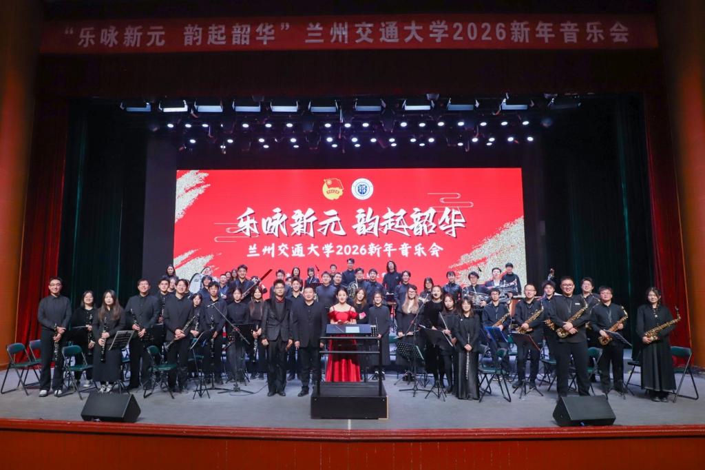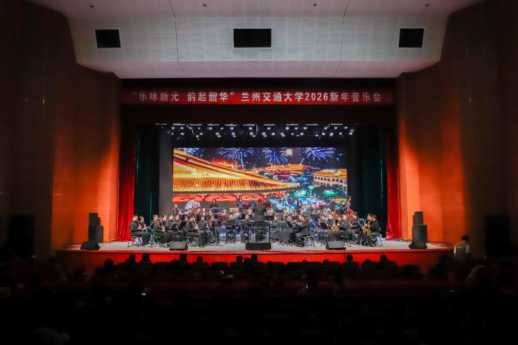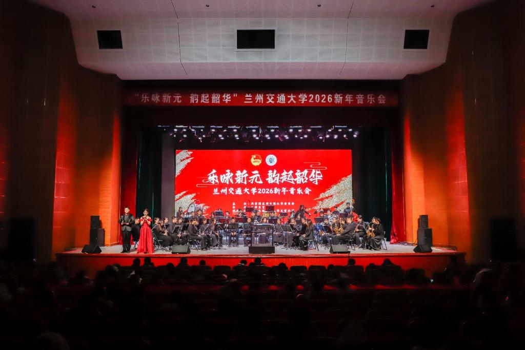 12月14日晚,交大礼堂内乐声悠扬,兰州交通大学“乐咏新元 韵起韶华”2026新年音乐会倾情上演。学校相关部门负责人、教职工及各学院学生代表共计1000余人齐聚现场,在管乐旋律中迎接新年的到来。
