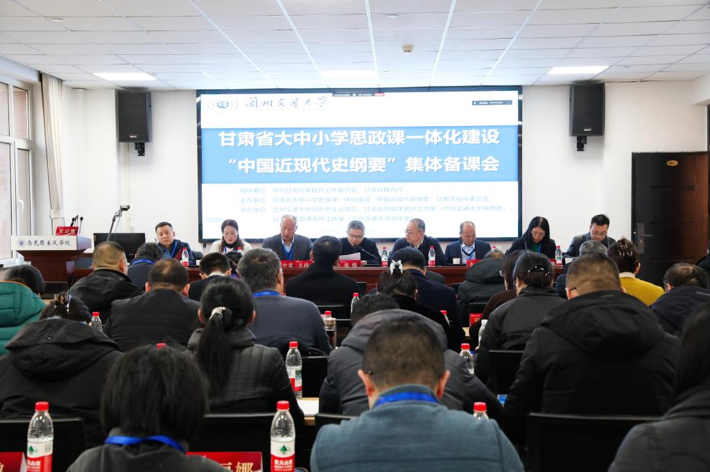 12月18日,甘肃省大中小学思政课一体化建设“中国近现代史纲要”集体备课会在我校马克思主义学院召开。本次备课会由中共甘肃省委教育工作委员会作为指导单位,甘肃省大中小学思政课一体化建设“中国近现代史纲要”分教学指导委员会主办,兰州交通大学马克思主义学院及依托学院设立的两家甘肃省思政课名师工作室协同承办。会议采用线上线下结合的方式进行,来自兰州大学、西北师范大学、兰州理工大学、兰州交通大学等单位共计100余名老师参会。