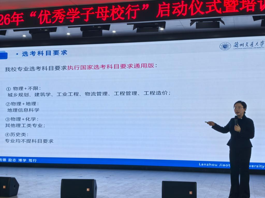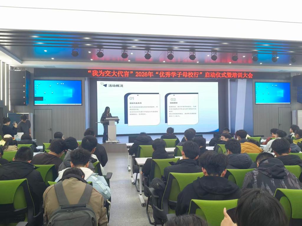 12月18日晚,活动启动仪式暨专题培训会举行。本次活动采用“线下主会场+线上直播回放”的多维模式,吸引全校千余名师生踊跃参与,共同见证青春使命的传递与延续。仪式伊始,一段精心制作的2025年“优秀学子母校行”活动回顾视频温情启幕。画面中,交大学子的足迹遍布全国百余所优质高中,他们以详实的宣讲解读专业特色,以细致的答疑消解备考困惑,以真诚的分享传递成长感悟——既有与学弟学妹共话备考心得的温情瞬间,也有全景展现校园学术氛围、社团文化的生动场景,更有深入解读轨道交通、土木工程等优势学科科研成果与就业前景的专业分享。鲜活的场景、真挚的情感,让在场师生深刻体悟到活动“传薪火、架桥梁、促协同”的核心价值。