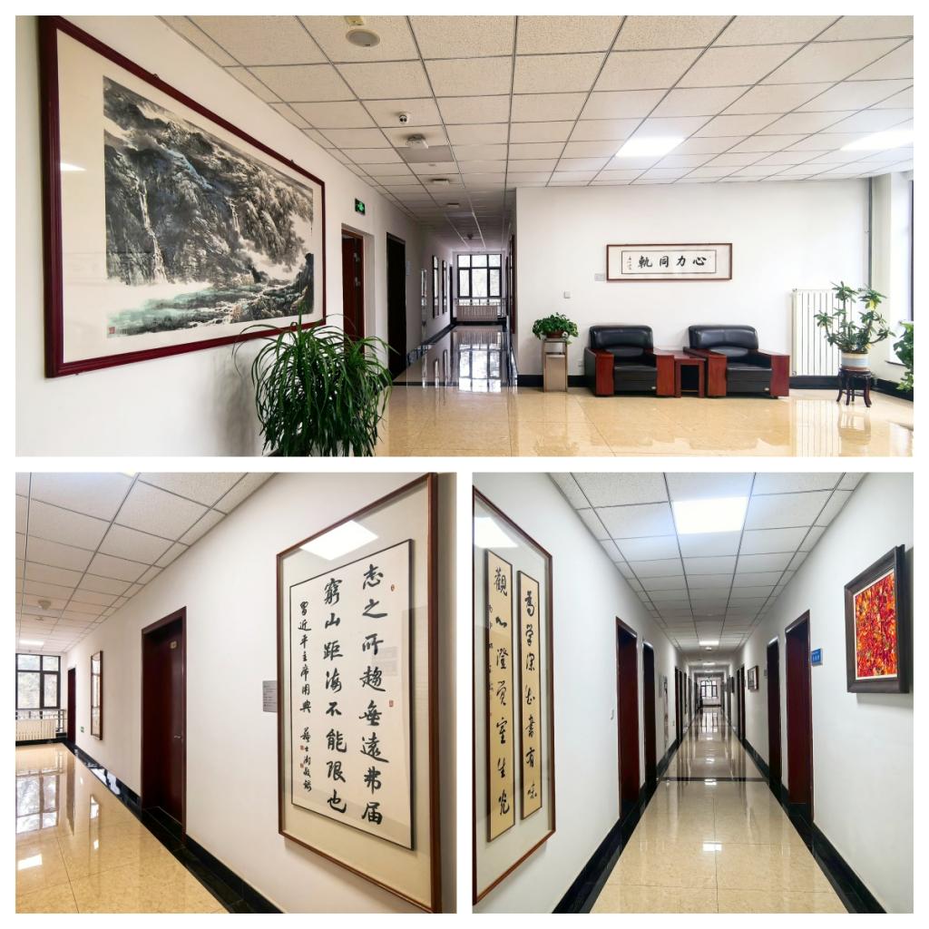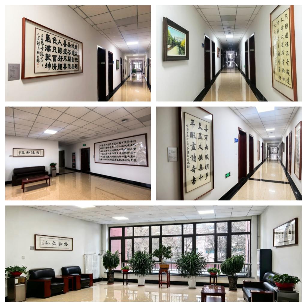 书法绘画作品的展示实现“名家引领+师生参与”双向赋能,走廊内,名家作品的深厚底蕴与师生创作的鲜活朝气交相辉映,既为行政楼办公环境增添了文化气息,更以无声的艺术语言传递治学精神、涵养品德修为。师生行走其间,目之所及是翰墨丹青,心之所感是文化熏陶,在潜移默化中提升文化素养、凝聚奋进力量,让行政楼真正成为 “可观、可感、可学” 的文化育人走廊。