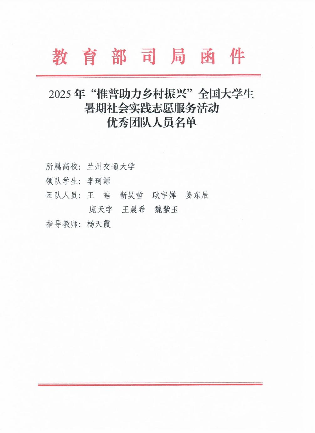 我校社会实践团队获评全国暑期社会实践志愿活动优秀团队