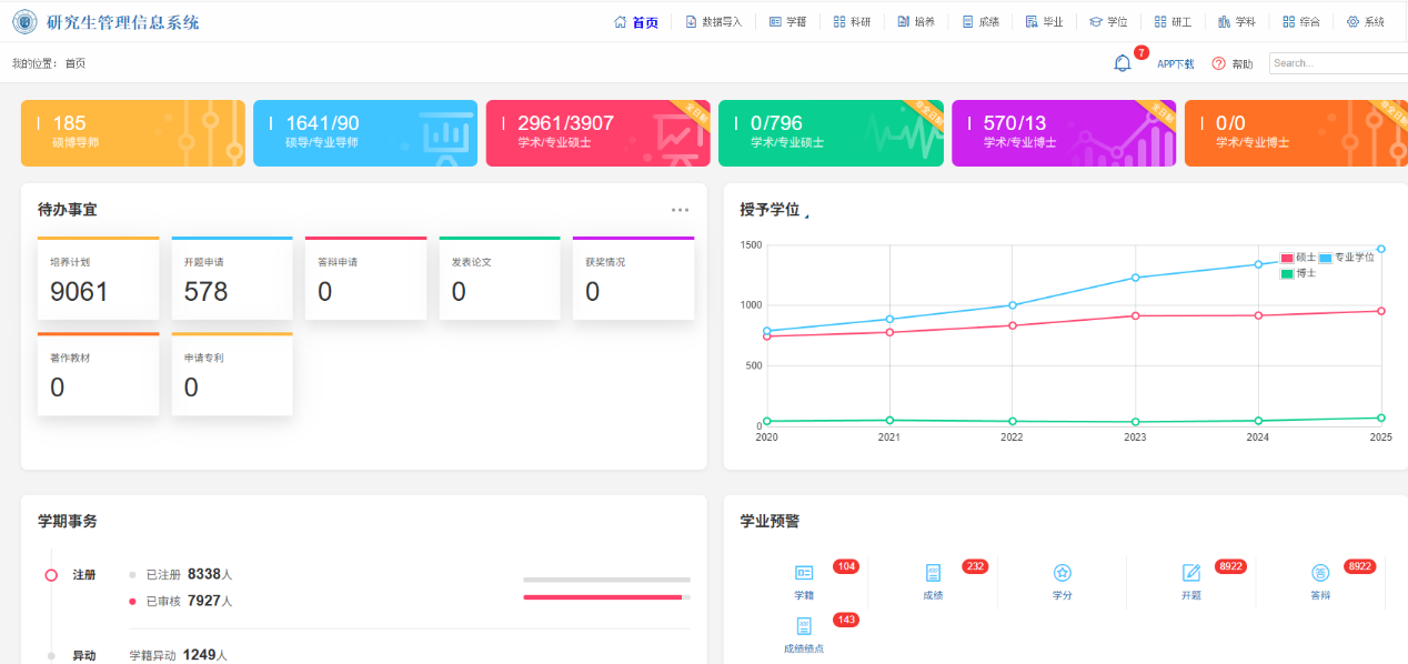 优化研究生管理平台与“辅导猫”功能,构建“招生—培养—学位—管理”全链条数据实时采集与监测。简化教师调停课审批流程;完善学位论文线上送审系统,实现学院端进度实时可视化;提供研究生成绩单可信电子文档在线自助打印;开通研究生出国(境)学习申请线上办理服务……通过一系列信息化手段减少师生线下奔波频次,推动“数据多跑路、师生少跑腿”,师生业务平均办理时限从5个工作日压缩至1个工作日,服务效率大幅提升。